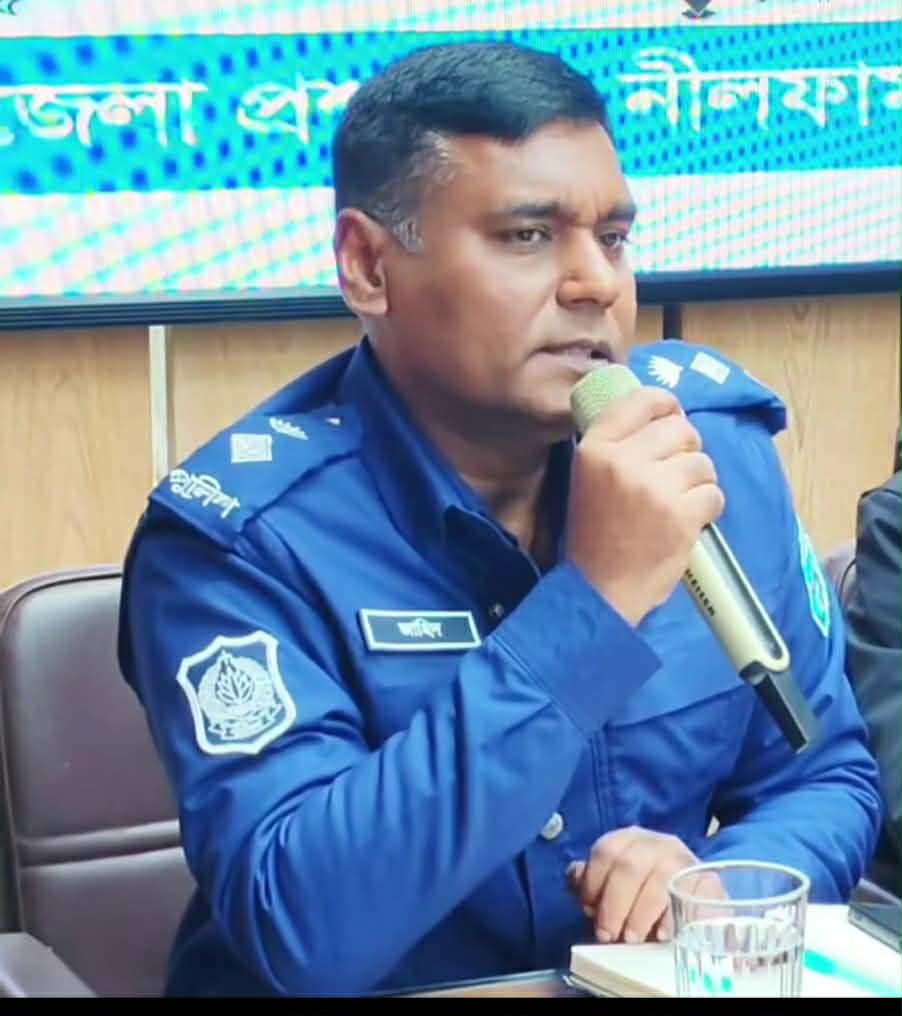 এর বিরুদ্ধে যে অভিযোগ আনয়ন করা হয়েছে,যা সম্পূর্ণ মিথ্যা ভিত্তিহীন।তিনি যতদিন দায়িত্বে থাকবে সকল সদস্যদেরকে কর্মকর্তা কর্মচারীদের সাথে নিয়ে সরকারি সেবা দিয়ে যাবে অফিসের উন্নয়নে কাজ করে যাবে জনগণের পাহারাদার হিসেবে আইন শৃঙ্খলা বজায় রাখতে হয়তো কিছু মানুষ অবৈধ সুবিধা নিতে পারছেন না এর জন্য মিথ্যা বানোয়াট অভিযোগ ছরাচ্ছে।এবং নিলফামারী জেলা এর সাধারণ জনগণ বলেন।এসব একটি কু চক্রী মহলের ষড়যন্ত্র এর পরেও এগিয়ে চলতে হবে নিলফামারী জেলা পুলিশ সুপার শেখ জাহিদুল ইসলাম পি,পি,এম তিনি খুব জনপ্রিয় দক্ষ পুলিশ সুপার,স্থানীয় সেবা গ্রহীতারা থেকে শুরু করে সকল পর্যায়ের খেটে খাওয়া মানুষরা বলেন নিলফামারী জেলা পুলিশ সুপার শেখ জাহিদুল ইসলাম পি,পি,এম অত্যন্ত ভালো মানুষ,কারো কাছ থেকে কোনো কাজের বিনিময়ে টাকা পয়সা নেন না এবং গরীব দুঃখী দের সেবা থেকে শুরু করে সকল কাজ বিনামূল্য করে দেন।এভাবেই উন্নত মানবিকতা চর্চার মাধ্যমে এগিয়ে চলতে হবে সামনের দিনগুলোতেও।
